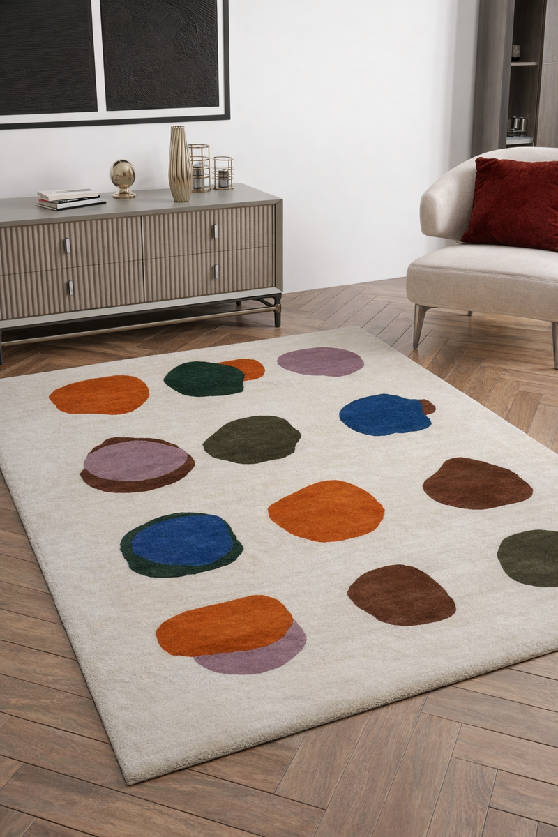 Das Gestaltungskonzept von BrilliantBlends lebt von einer organischen Anordnung abstrakter Formen, die sich harmonisch miteinander verbinden. Die Komposition wirkt bewusst ruhig, gleichzeitig jedoch raffiniert – wie ein visueller Fluss, der sich über die gesamte Teppichfläche erstreckt. Dieser ausgewogene Aufbau macht die Kollektion zu einer idealen Wahl für Interieurs, die Wert auf dezente Modernität und subtilen künstlerischen Ausdruck legen.